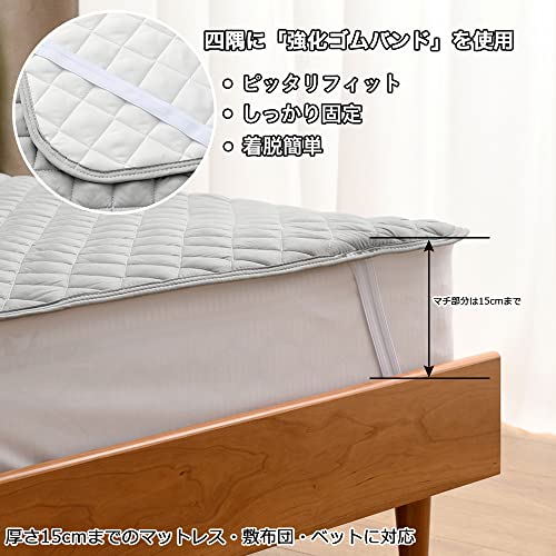 Kuzko 敷きパッド ベットパッド オールシーズン ピーチスキン加工 サラサラ 洗える 吸汗通気 速乾 強化ゴムバ
