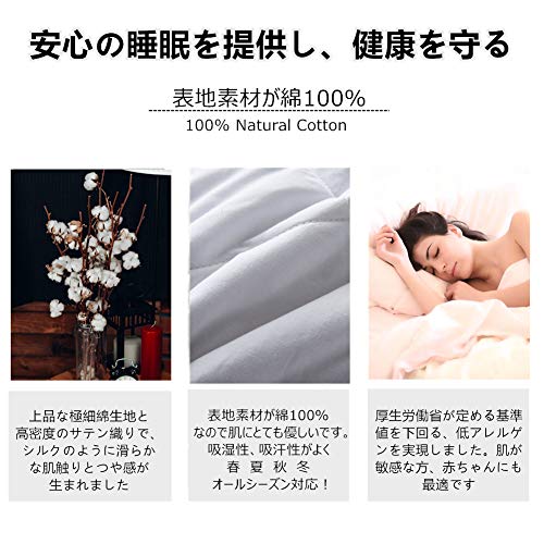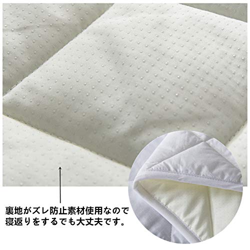 :表地素材が綿100%なので、肌にとても優しいです。柔らかさと反発性を兼ね備えた敷きパッドは、とってもソフトな肌ざわりが特徴、耐久性も高い、1年中のオールシーズンにお使いいただけます。 裏地がズレ防止素材使用 ポリエステル100%、中わた:中綿入り 抗菌防臭わた使用