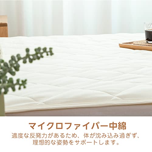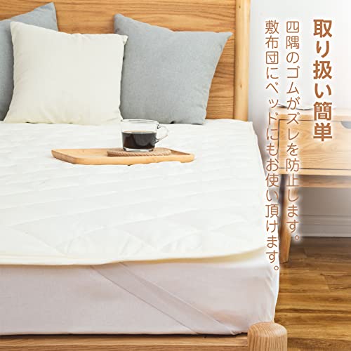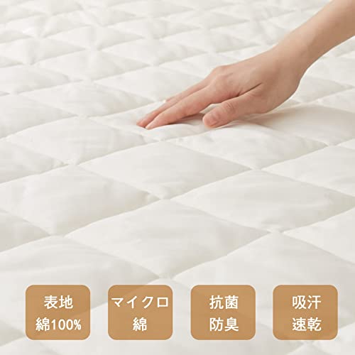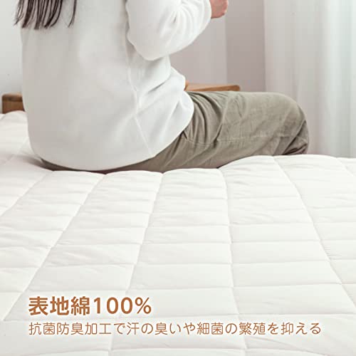 Mensu 敷きパッド ベッドパッド ダブル 綿100% 肌触りよい オールシーズン快適 抗菌防臭 吸汗 速乾 中綿入り 丸