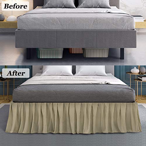 PiccoCasa ベッドスカート ポリエステル 無地 プリーツ 洋式 シンプル 高質感 エレガント ベッド装飾 ベッドカバ