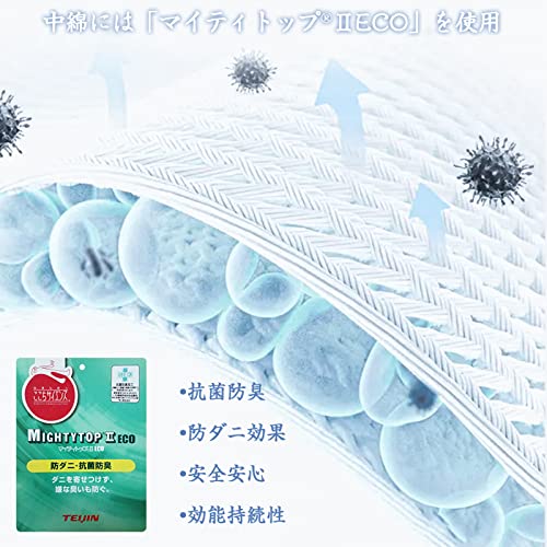 【抗菌防臭】中綿は防ダニ・抗菌・防臭効果のある帝人の「マイティトップ」を使用します。「マイティトップ」の抗菌防臭効果で汗の臭いや細菌の繁殖を抑える、清潔感を保ちます。