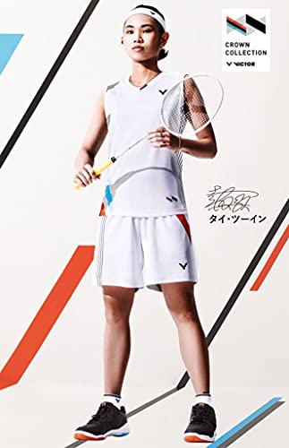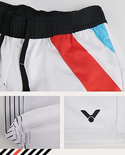 VICTOR バドミントン CROWN COLLECTION R-CC102 A タイツーイン ハーフパンツ ホワイト ストライプ スプライシング 吸湿