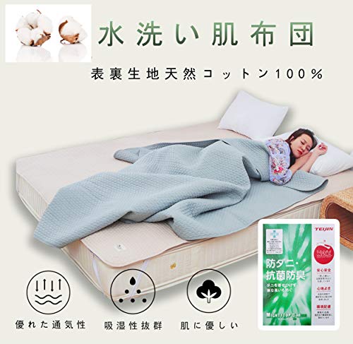 【感動されの素材構成】帝人マイティトップII防ダニ抗菌防臭効果あり中綿を使って、表裏地天然素材綿100%を使用。