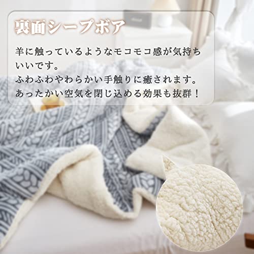 Hanacat 掛けふとん シングル 毛布布団 中綿入り 掛け布団 シープ調 裏ボア 厚手 発熱 蓄熱 ストライプ柄 グレー