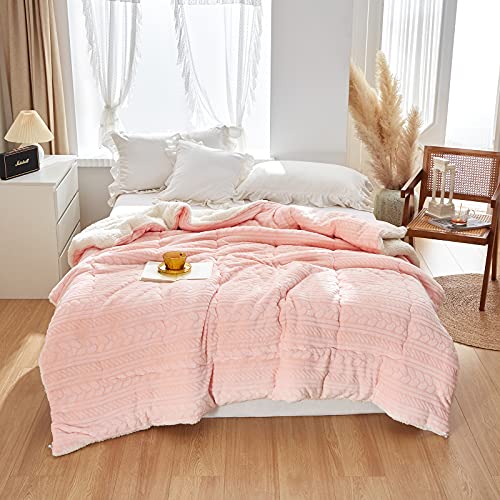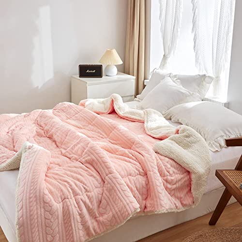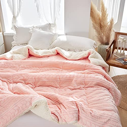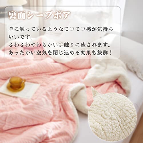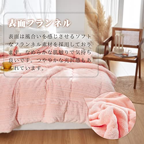 Hanacat 掛けふとん シングル 毛布布団 中綿入り 掛け布団 シープ調 裏ボア 厚手 発熱 蓄熱 ストライプ柄 ピンク