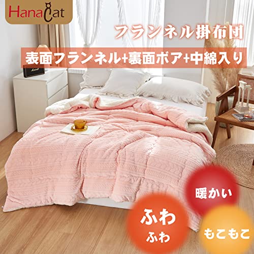| 商品名 | Hanacat 掛けふとん シングル 毛布布団 中綿入り 掛け布団 シープ調 裏ボア 厚手 発熱 蓄熱 ストライプ柄 ピンク |