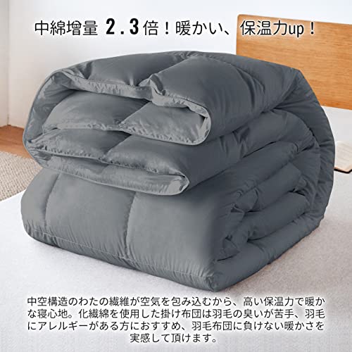 2【中綿〓量、あったか】中綿〓量2.3倍、保温力拔群!中空構造のわたの繊維が空気を包み込むから、高い保温力で暖かな寝心地。化繊綿を使用した掛け布団は羽毛の臭いが苦手、羽毛にアレルギーがある方におすすめ、羽毛布団に負けない暖かさを実感して頂けます。