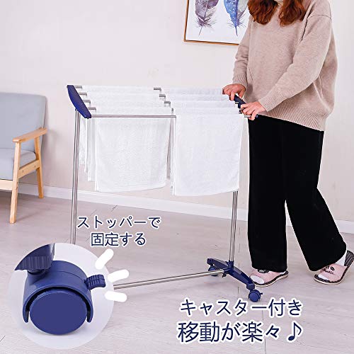 室内タオル干しハンガーです、キャスター付き移動便利、工具不要で簡単に組立できます。少なくても大判のバスタオルは5枚、又はフェイスタオル10枚を干せることができます。通風性良好、乾きやすいです。