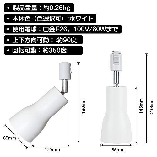 | 商品名 | Tengyuan ライティングバー用スポットライト E26 LED電球付き 60W形 ダクトレール用 器具セット ダクトレール ライ |