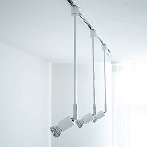 ダクトレール専用の照明器具:無駄のないスタイリッシュさで、かなり洗練されます。レールから48cmとなります。天井面からLEDランプ込みで約50cm下がるのですが、かなり感じが変わります。