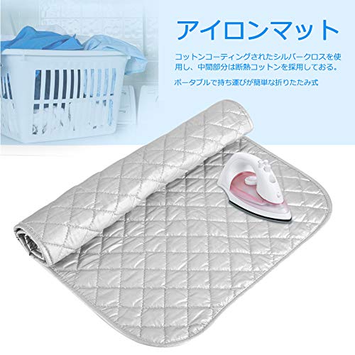 【耐熱性&高効率】アイロンマットはテーブルの上に敷けばどこでもアイロン台として使えます。中綿の質がしっかりしており、水分を吸収してきれいに仕上げます。マットの下が熱くなったり湿ったりするのも抑えています。表面は丈夫な綿生地を採用し裾や布端の折り上げ等の作業効率がアップします。アイロンパッドは好きな平たい場所をアイロン台替わりに使え