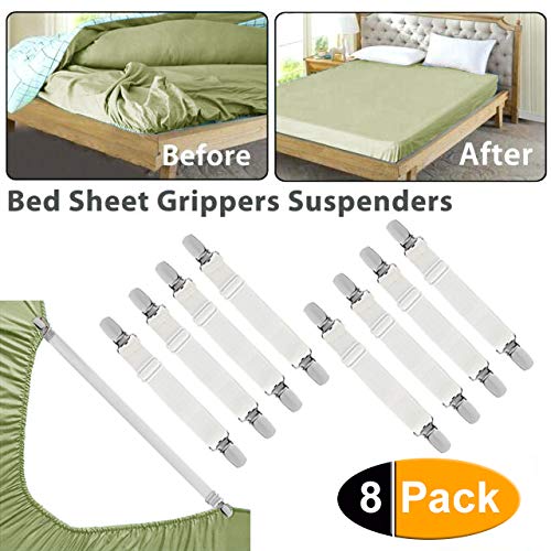 LIHAO シーツクリップ ズレ防止 アイロン台カバークリップ 調整可能 白 8本入れ