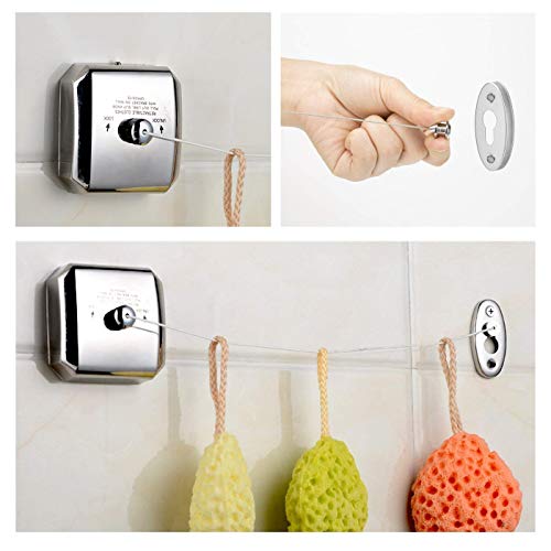LUCKYBEE 室内物干しワイヤー 壁かけ式 伸縮式物干しロープ ステンレス製 収納簡単 コード巻き取り物干しハン