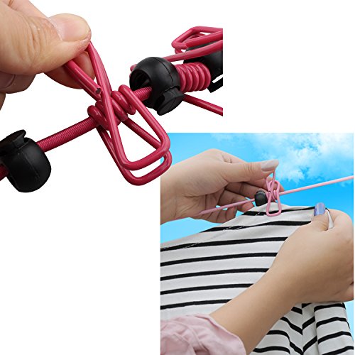優れたロープ:両端のフックを使って簡単にロープを張ることができます。高い弾性と耐久性があり、軽く、収納に困ることのない優秀な物干しロープです。