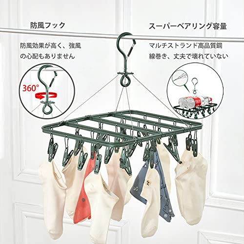 【高品質の素材と優れた耐久性】:防風フックとフレームは高品質のアルミニウム合金で作られ、28本のハンガークリップと4本の鋼線は高品質のステンレス鋼で作られています。耐久性に優れ、長持ちします。クリップは取り外し可能で、使用しないときは簡単に保管できます。