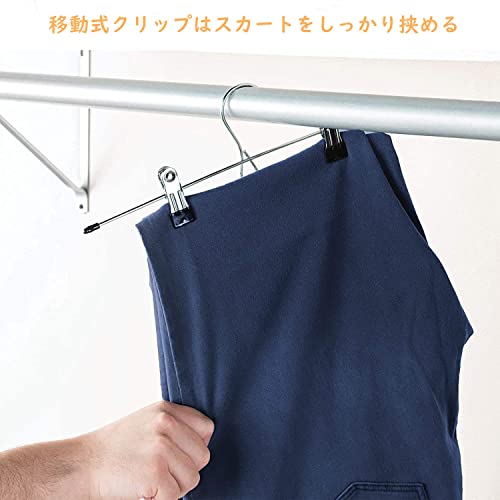 【クリップの幅調節可能スカートハンガー】クリップは左右にスライドするので(約10~29cm)、スカート、ズボンに適するだけではなく、マフラーやスカーフ、水着やインナー小物類にも適しています。ご都合によってハンガーの幅を調節できます。