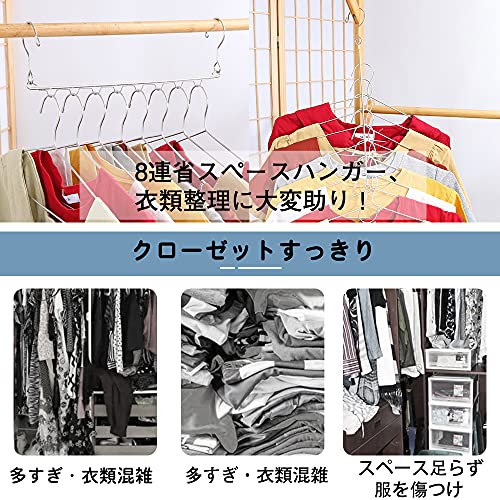 ?【省スペース】お得5枚セットです!_ハンガー1本分のスペースを取り、シャツ、女性用シャツ、スーツ、ジャケット、コート、セーター、パンツ、ワンピースなどを8枚まで吊るすことができます。スペースを80%まで解放し、クローゼットの省スペース化とすっきり感を最大限に引き出します。