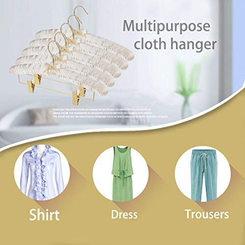 DEWEL スポンジハンガー サテンハンガー 布ハンガー クリップ付き リボン付き 布製 シルク ふっくらハンガー