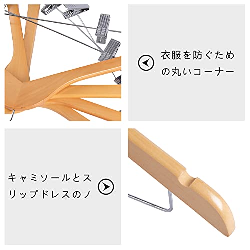 木製スーツハンガー クリップ付きハンガー 10本セット スーツ ジャケット コート用 手作 天然高級木 (ナチュ