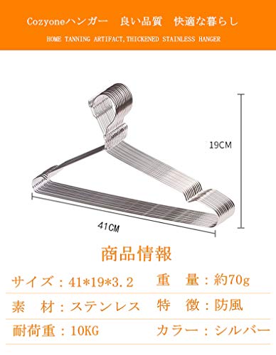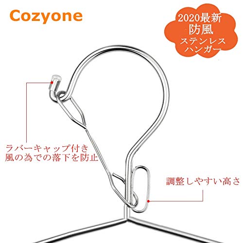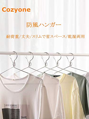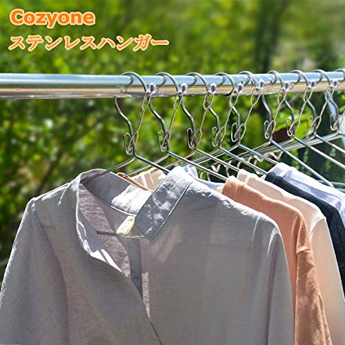 Cozyone 10本 ハンガー ステンレスハンガー 防風フック付きサビにくい クローゼット収納 かさばらない 頑丈 洗