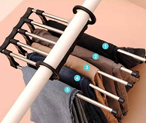 クローゼット 収納 ズボンハンガー 5段ズボンハンガー 2本セット 折り畳み式 多機能スラックスハンガー 連結