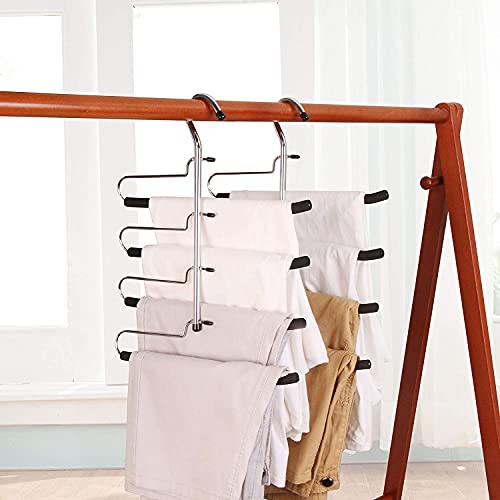 パンツハンガー滑り止め、4層省スペースズボンハンガー、ステンレススチール多機能パンツラック、パンツ用