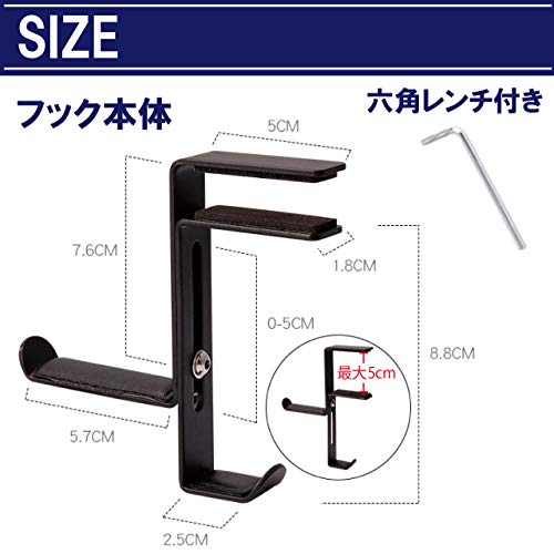 デスクや棚を傷つけないソフトクッション付き: 2本のバーで高さ調節可能。5cmの厚さの板まで挟んで設置できるので、机や棚などに設置が可能。 挟む部分には柔らかいクッションが施されているので、ヘッドホンや机など傷を付ける心配はありません。 長時間設置できますし、気分や環境の変化で別の場所に取り付けることもできます。