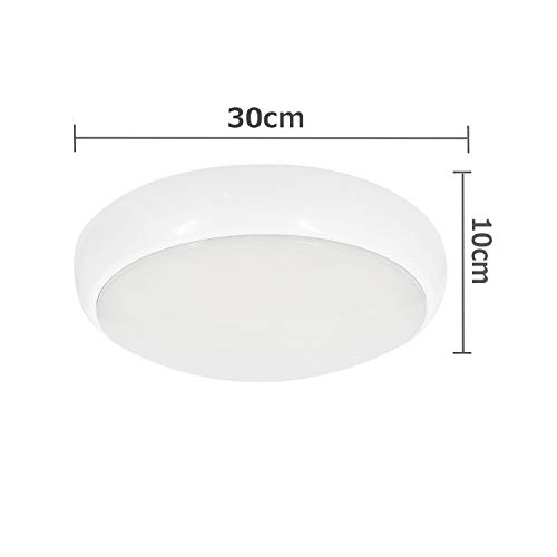 【商品仕様】商品サイズ(cm):直径約30cm×30高さ約10cm。重量:約550g 材質:アクリル、AES。電源:AC100V(50/60Hz共用) 定格消費電力:15W 器具光束:約1500lm 色温度:5000K設計寿命:40000h