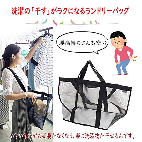 軽量メッシュ素材:通気性が良く、乾きやすいので衛生的。 長さ調節可能:ショルダーの紐は自分に合った長さに調節できます。 底面は防水生地!:洗濯物の水分や汚れをサッと拭き取れます。