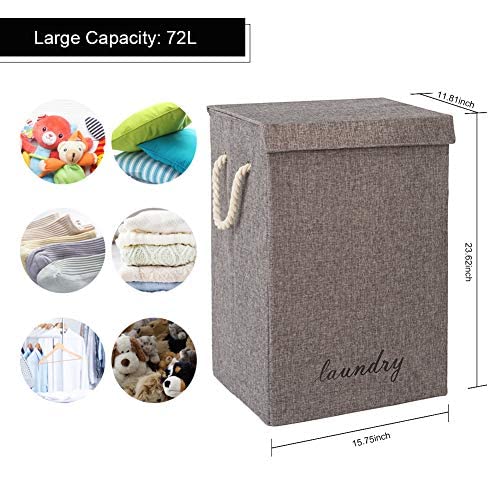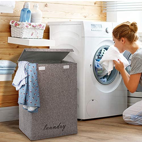 COUNER 蓋付きランドリーハンパー 大型ランドリーバスケット ハンドル付き 折りたたみ式ハンパー 洗濯簡単 収