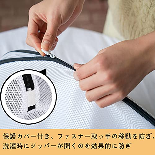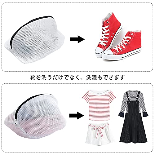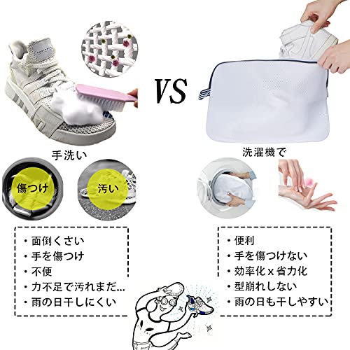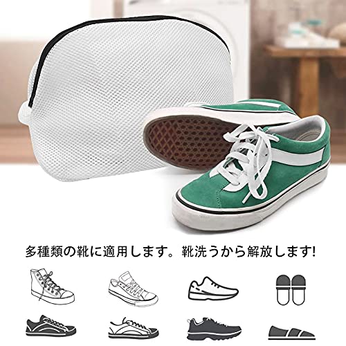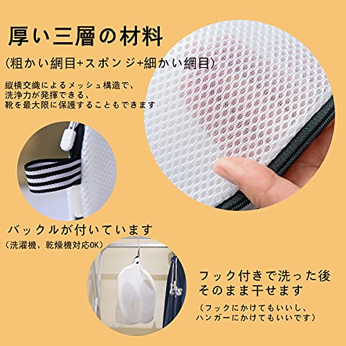 【三重ネットワーク設計】高品質の100%ポリエステル製で、耐摩性や衝撃性が強いで、再利用できます。 生地が三重になっているので、縦横交織による台形状なメッシュ構造になっており、強度が高く、形が崩れないです。外層のネットの材質はとても厚くて、網状の物はとても太くて、洗濯に適します。内の網目が細かいので洗浄力を発揮しながら、最大限に靴を守って、靴の