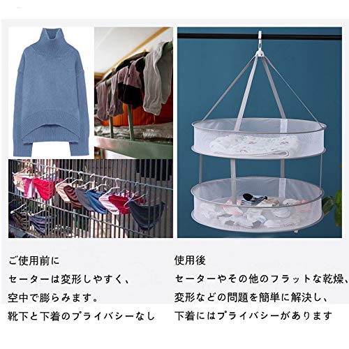 【大容量・変形防止・強力支持力】開封後のサイズ:直径61cm、2層構造で、セーター、下着、下着、靴下、ぬいぐるみなどの密着した薄手のあらゆる服の乾燥に最適。 、プライバシー保護、乾燥によって引き起こされる腫れた、変形したセーターを効果的に回避します。