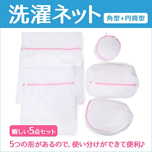 パッケージ内容:5種類の洗濯ネットセット(大型:4958.5cm、中型:3948.5cm、筒型:3020cm、四角型袋:262626cm、下着用:1614cm)