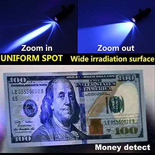 【焦点調整とユニーク性能】ズームイン/ズームアウトして適切な照明範囲を調整します。ビームを拡大して疑わしい部分を丸で囲み、ペットの尿に印を付けます。UV懐中電灯は365 nm 波長LED光源を採用しており、暗いダイオードランプを採用しないで