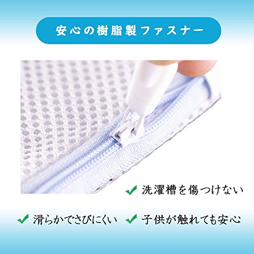【樹脂製ファスナー】滑らかな開閉と耐久性に重点を置いたファスナーを採用しています。 引手もスライダーもプラスチック製で洗濯槽を傷つけない、金属製スライダーに比べ摩耗が少なく長持ち、子供が触ってもケガしにくいといった様々なメリットがあります。