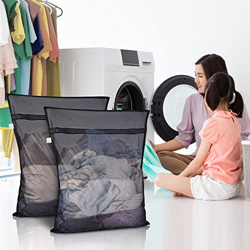 OTraki 洗濯ネット 黒 大 60x80cm 2枚入り ランドリーネット YKKファスナー 洗濯袋 四角 細かい網目 布団用 せんた