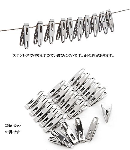 | 商品名 | 洗濯ばさみ 20個入 洗濯ピンチ 物干し 竿ばさみ 服クリップ ステンレス製 シルバー ペグ 多用途 たっぷり入っ |