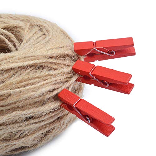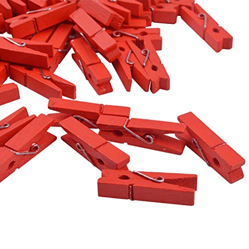 BronaGrand 100個入り ミニ木製クリップ 木製洋服ペグ ミニ洗濯バサミ 写真/紙用 (レッド)