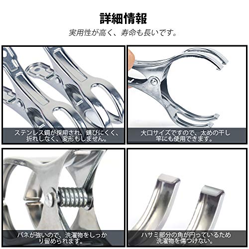 | 商品名 | Teenitor 洗濯ばさみ ステンレス 竿ピンチ 10個 物干し竿用ばさみ 竿用ピンチ 防風タイプ 洗濯バサミ 大口サイズ |