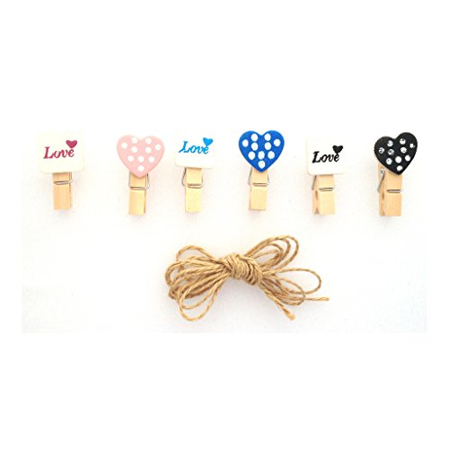 LWRの工芸品木製ミニ洗濯はさみ愛と心24個とジュートコード2.4メートル (A)