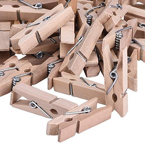 BronaGrand 50個入り ミニ 木製 クリップ ミニ洗濯バサミ写真はさみ ジュート巻きのロール付き(164フィート) 写