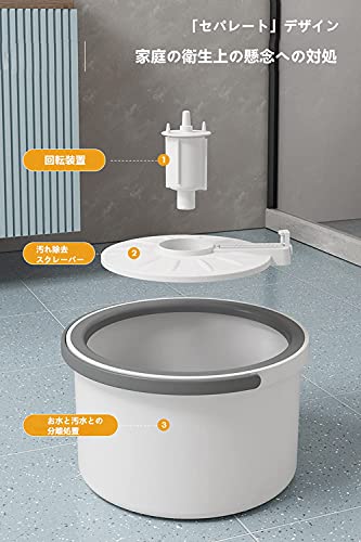 「空間節約・収納便利」:モップバケツセット:一槽式バケツは二槽式よりコンパクトです。洗浄と脱水が一体化になっており、収納スペースに困らないです。掃除が終わったら、ポールを3段に分けてバケツの中に入れて収納できます。