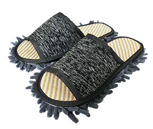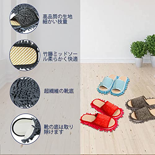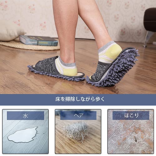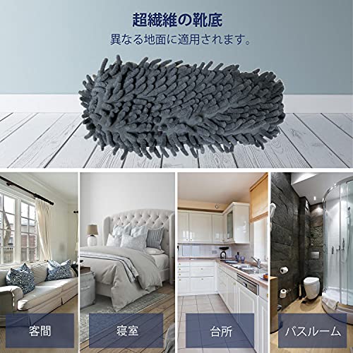 女性用モップスリッパ、レディースマイクロファイバー床掃除スリッパ 柔らかく快適 家のスリッパ (Grey,M)