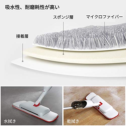 【水の節約&扇形スプレー】スプレー機能を搭載するフロアモップは380ml水タンクが付いており、ご都合に合わせて水や洗浄液などを入れて、モップヘッドの水出口から液体が霧状に出るので、簡単に水拭きすることができます。