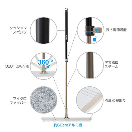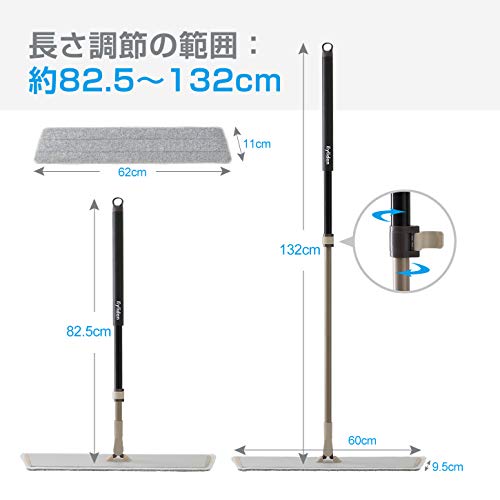 【いいデザイン】:ハンドルの長さ約82.5~132cm範囲で自由に長さ調節することができ、腰を大変に曲げる必要なくお気軽に使用できます。60cmのアルミ板が幅広くて、広い部屋でも余裕あり掃除が実現できて、床掃除の時間も節約でき
