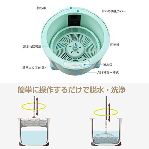 回転モップ Eyliden. フロアモップ フローリング ワイパー モップ回転 モップ絞り器 モップセット ミント クロ