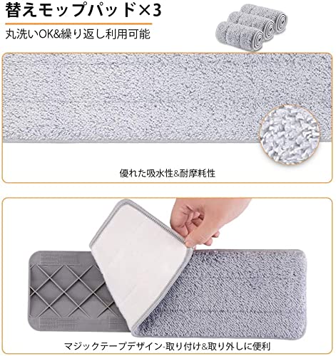 DEKOHM モップ フロアモップ 水拭きモップ スプレー 360度回転モップ 交換用パッド3枚付き フロアワイパー 床掃