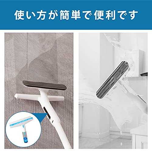 【いいデサイン】取り外し可能なスクイジー(透明な部分):高品質TPRヘッドは軽くて使いやすいシンプルなデザインの水切りワイパーです。様々な滑らかな表面に適しており、ガラスの表面効果が最も良い。水垢の速やかな除去とカビの防止ができます。 スポンジヘッド(グレーの部分):スポンジは材質が柔らかく、面積が広く、物体表面に傷がつかない。特殊な材質で強力に吸水性のあるものは、余分な水や石鹸水を瞬時に吸い取ります。
