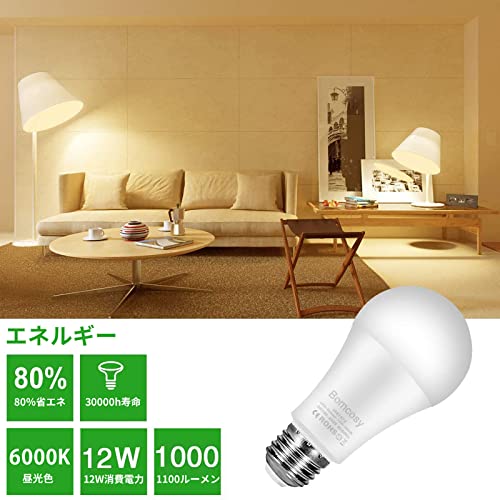 | 商品名 | Bomcosy LED電球 E26口金 100W形相当 1100lm 省エネ90% 昼光色相当(12W) 6000K 広配光タイプ 6個パック 2年間の保証があ |