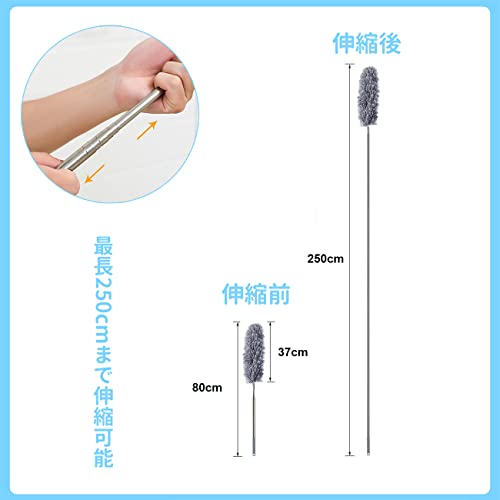 はたき ほこりとり 伸縮掃除モップ 曲がるモップヘッド 高所掃除 すきま掃除 マイクロファイバー 洗える エ